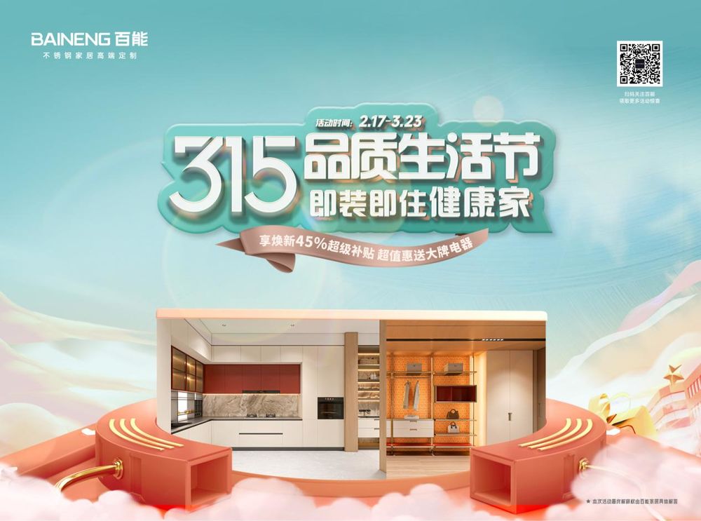 本次315品质生活节大促,百能重磅推出即装即住品质套餐,官宣315品质生活节即装即住健康家普惠战略,下定享至高45%补贴,真正让我们消费者享受到落地的惠民福利,让百能绿色环保的不锈钢家居产品走进千家万户。