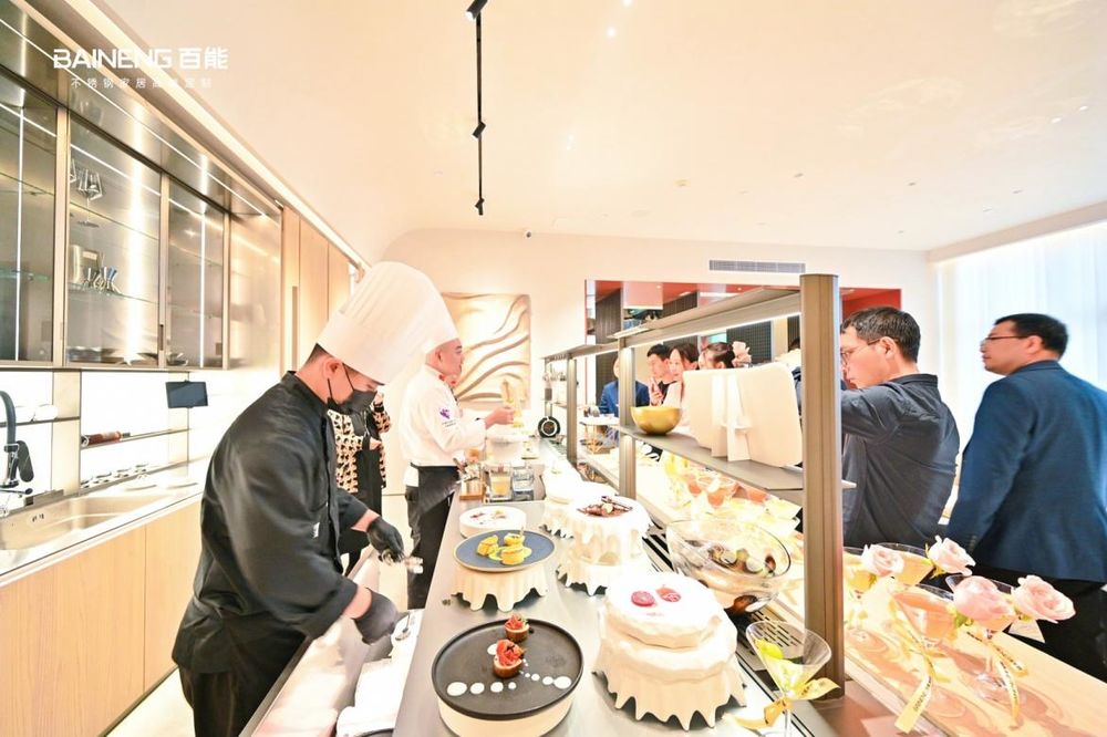 百隆、巴斯蒂姆、悍高等百能战略合作伙伴们,现场也对配套产品做了分享交流。此外,现场还特别设置了星级大厨互动体验环节,让嘉宾们在品味高端家居艺术的同时,也能享受到舌尖上的奢华盛宴。