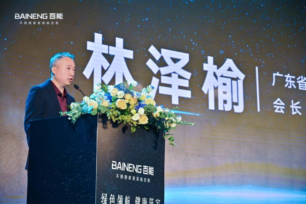 广东省不锈钢材料与制品协会会长林泽榆阐述了不锈钢材料在绿色家居中环保、耐用方面的突出优势,肯定了百能对不锈钢家居品质提升的积极贡献,呼吁不锈钢家居上下游企业加强合作,共同携手推动行业的高质量发展。